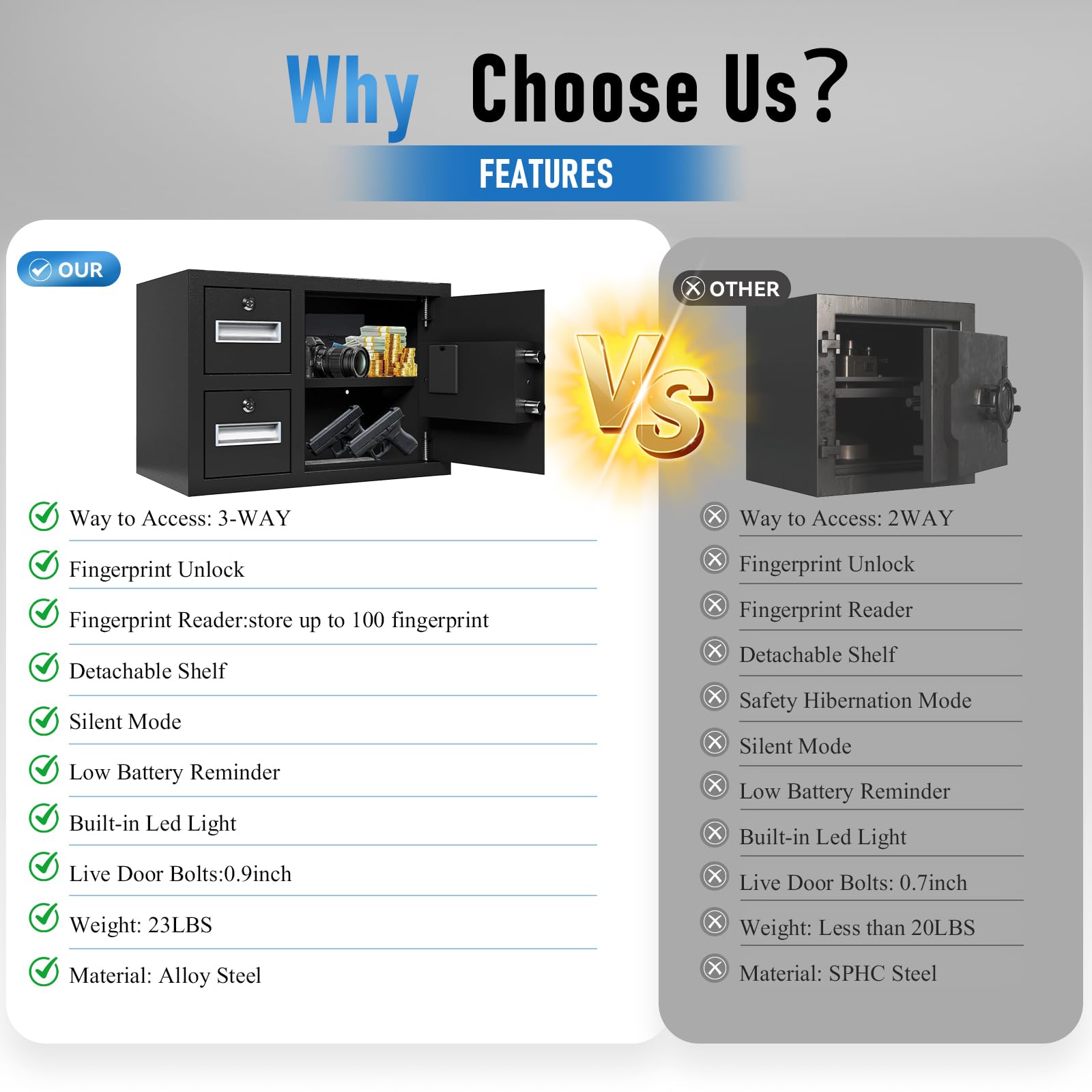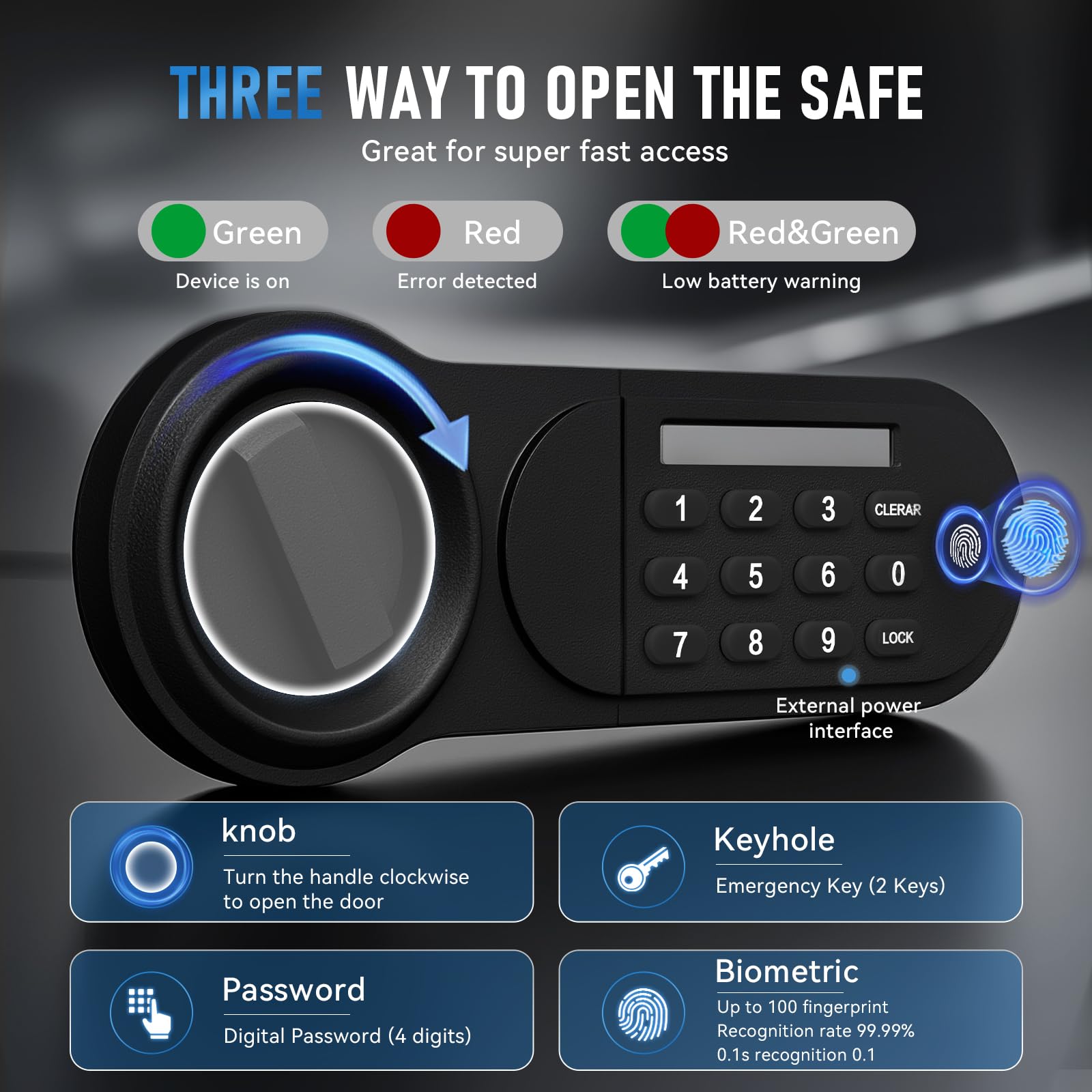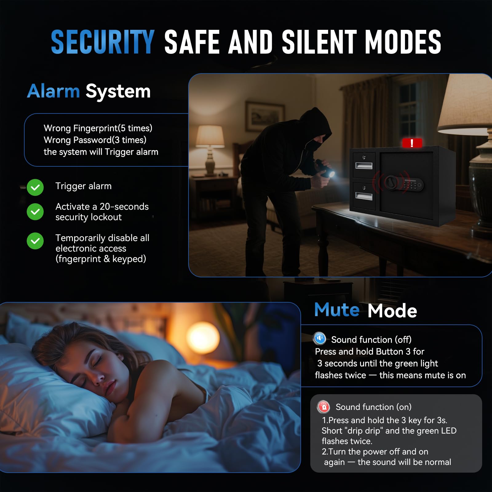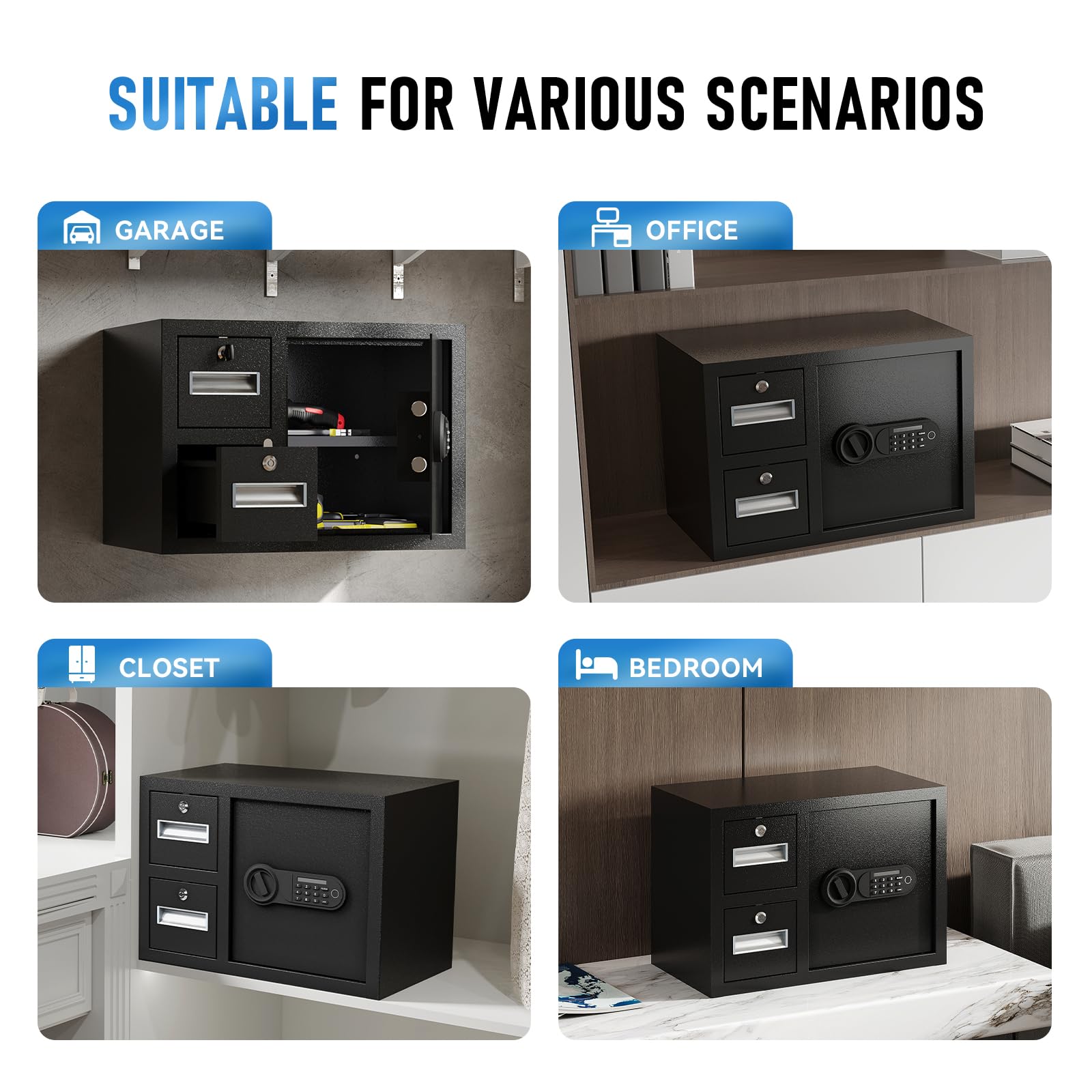 NIGSQJB 1.85 Cubic Ft Storage Locker for Home Office, Steel Safe Box with Fingerprint Biometric, 2 Drawer, 3 Unlock Way, Upgrade Silent & Anti-Theft, LED Light, Safety Box for Money, Jewelry, Black