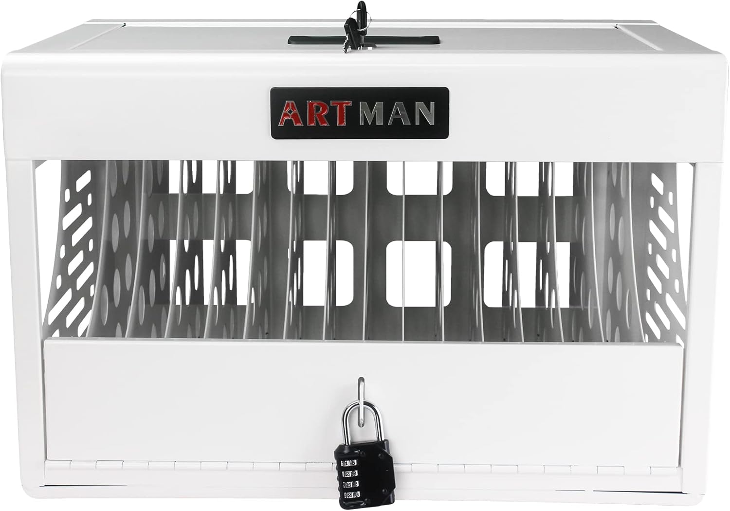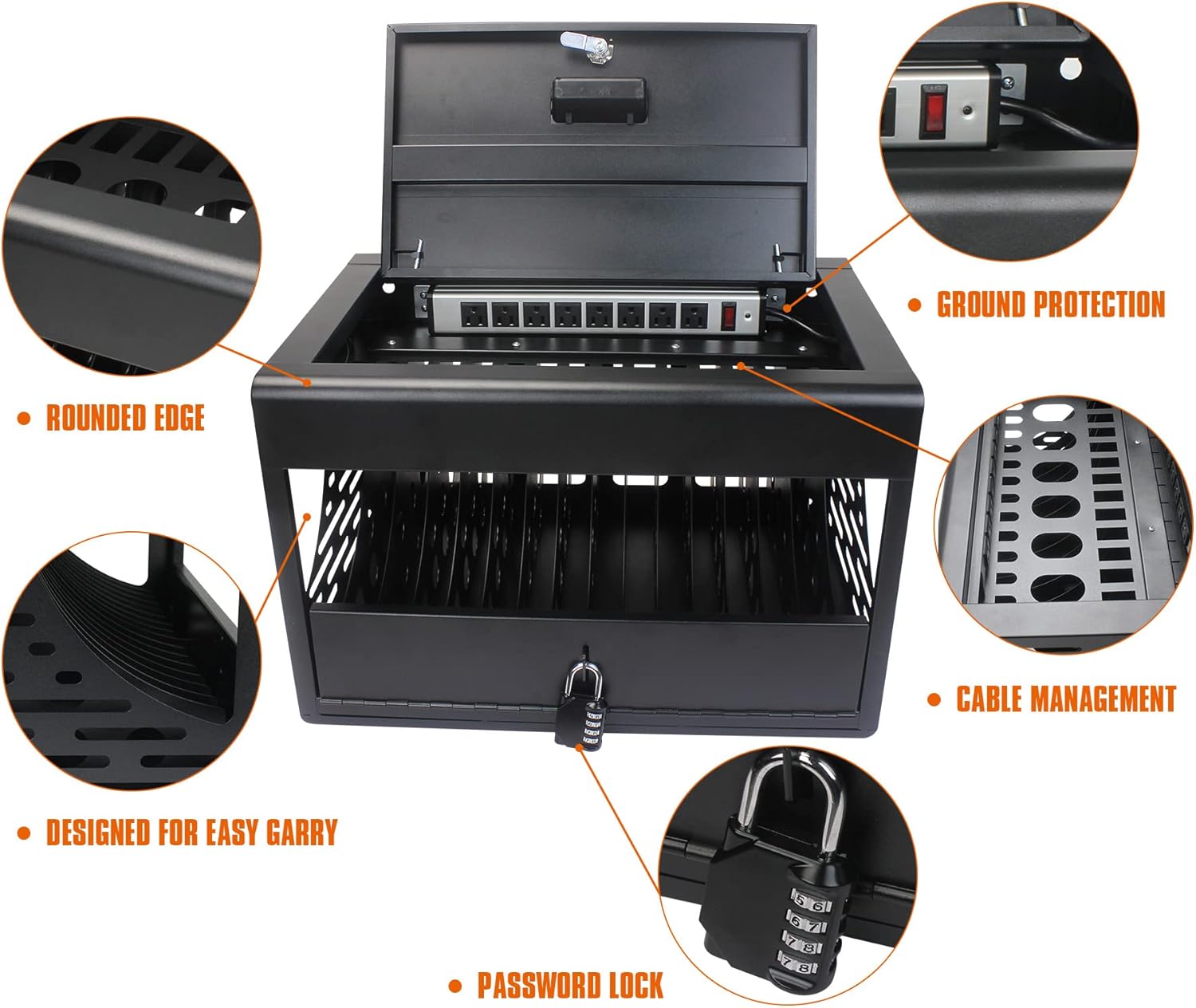 - ✅ 【LOCKING CHARGING BOX】Charging cabinet with lock for multiple devices tablet storage cart! The enclosed front doors, key lockable top, and combination lock will keep your s safe from unauthorized usage.