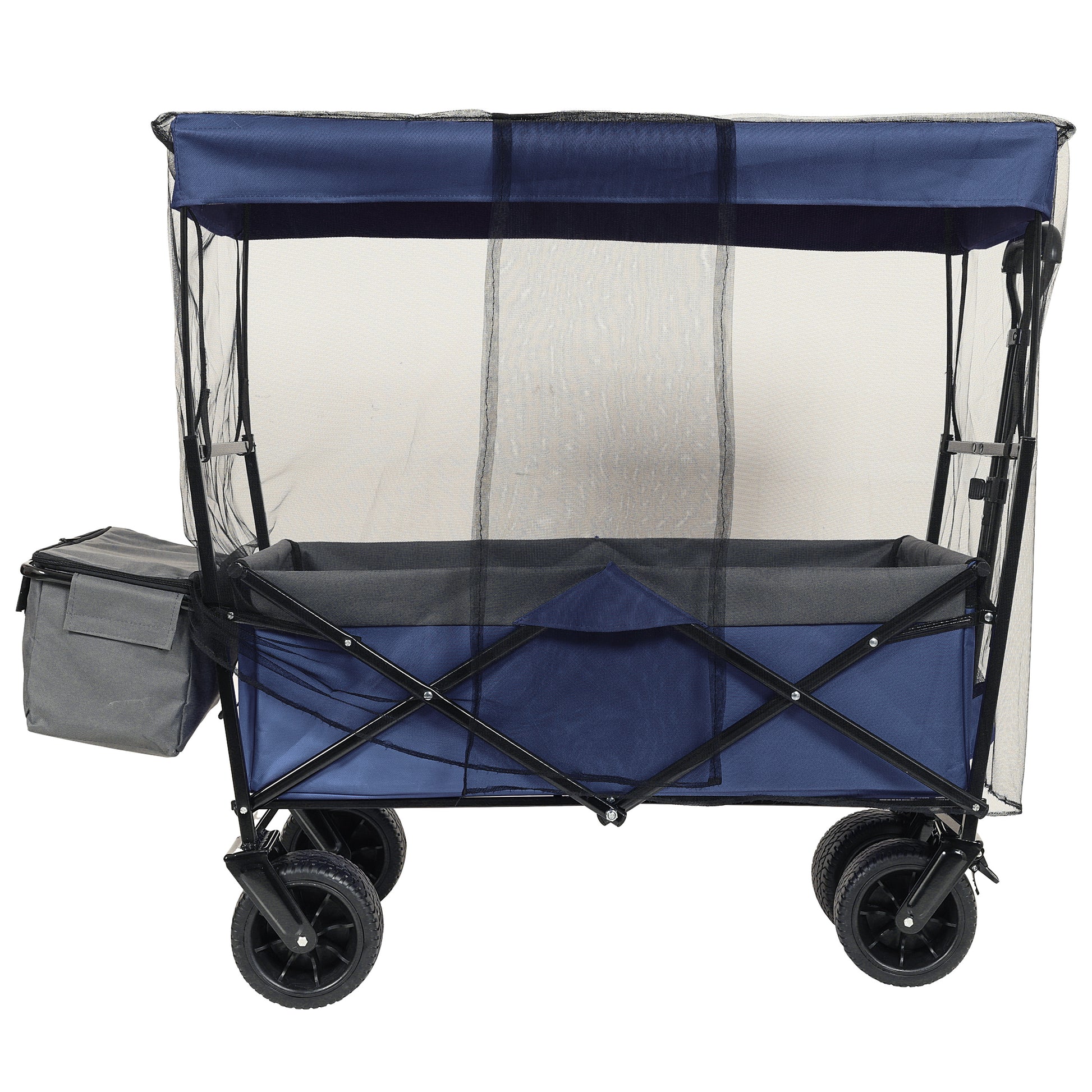 - Large Capacity 150L 480Lbs – Adjustable Handle, Compact Fold Size, Load Up to 480lbs, Super Large 7"x4" Wheels,drink holders, removable canopy ,black with mosquito net This mosquito net cover is designed for collapsible wagons and offers excellent protection against bugs while allowing airflow.
