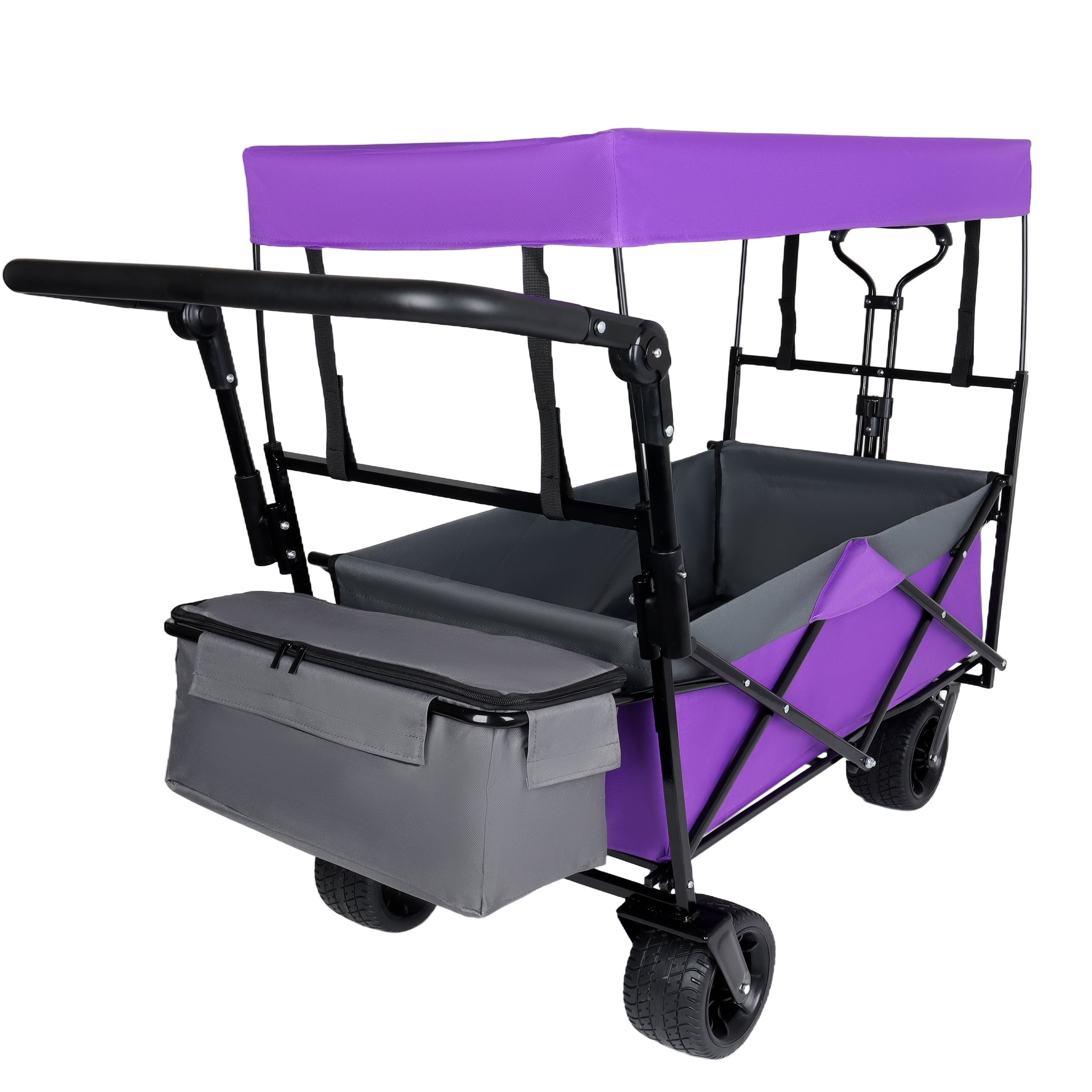 - Push or Pull Versatility, Move Effortlessly Anywhere! Adjustable Handle, Compact Fold Size, Load Up to 480lbs, Super Large 7"x4" Wheels,drink holders, removable canopy.