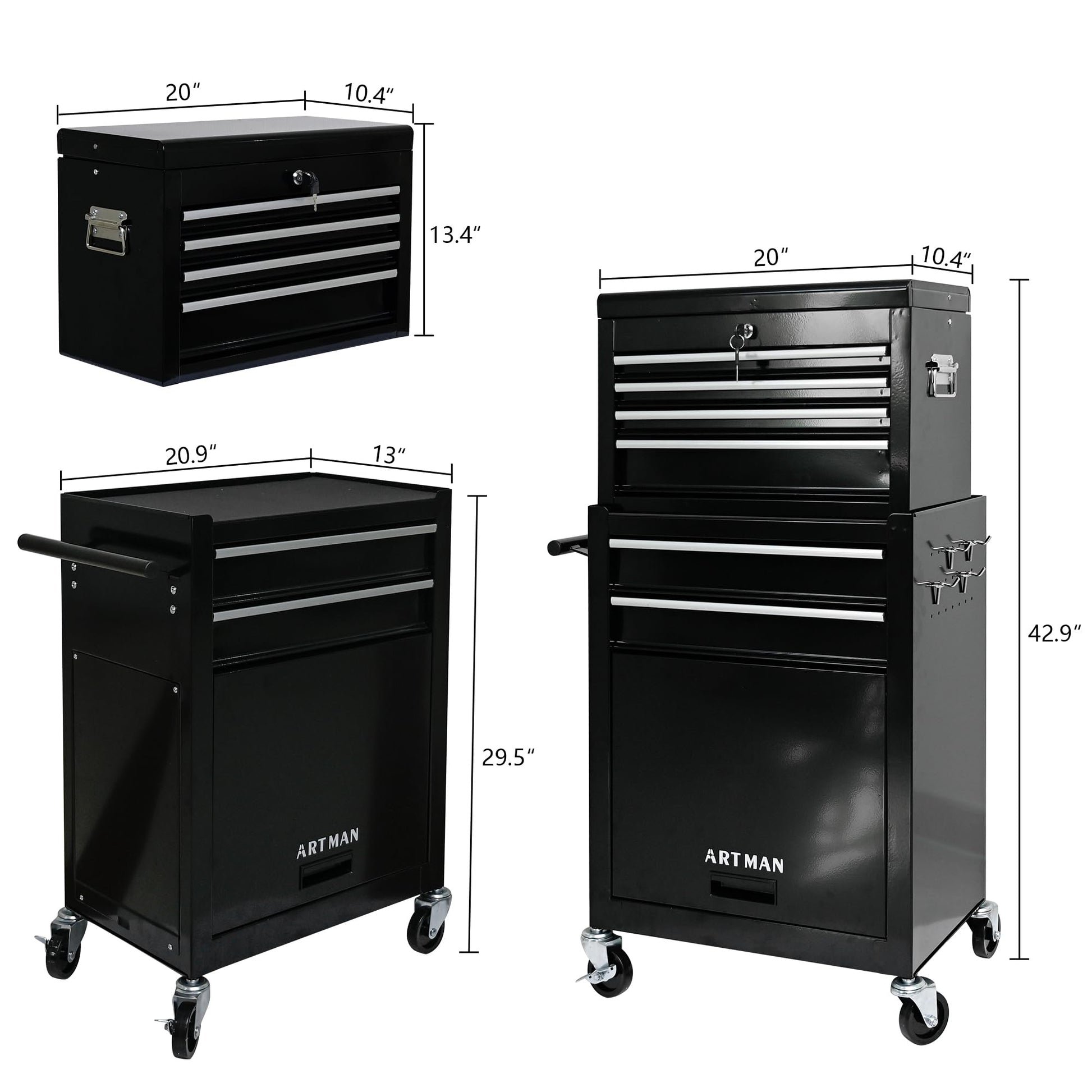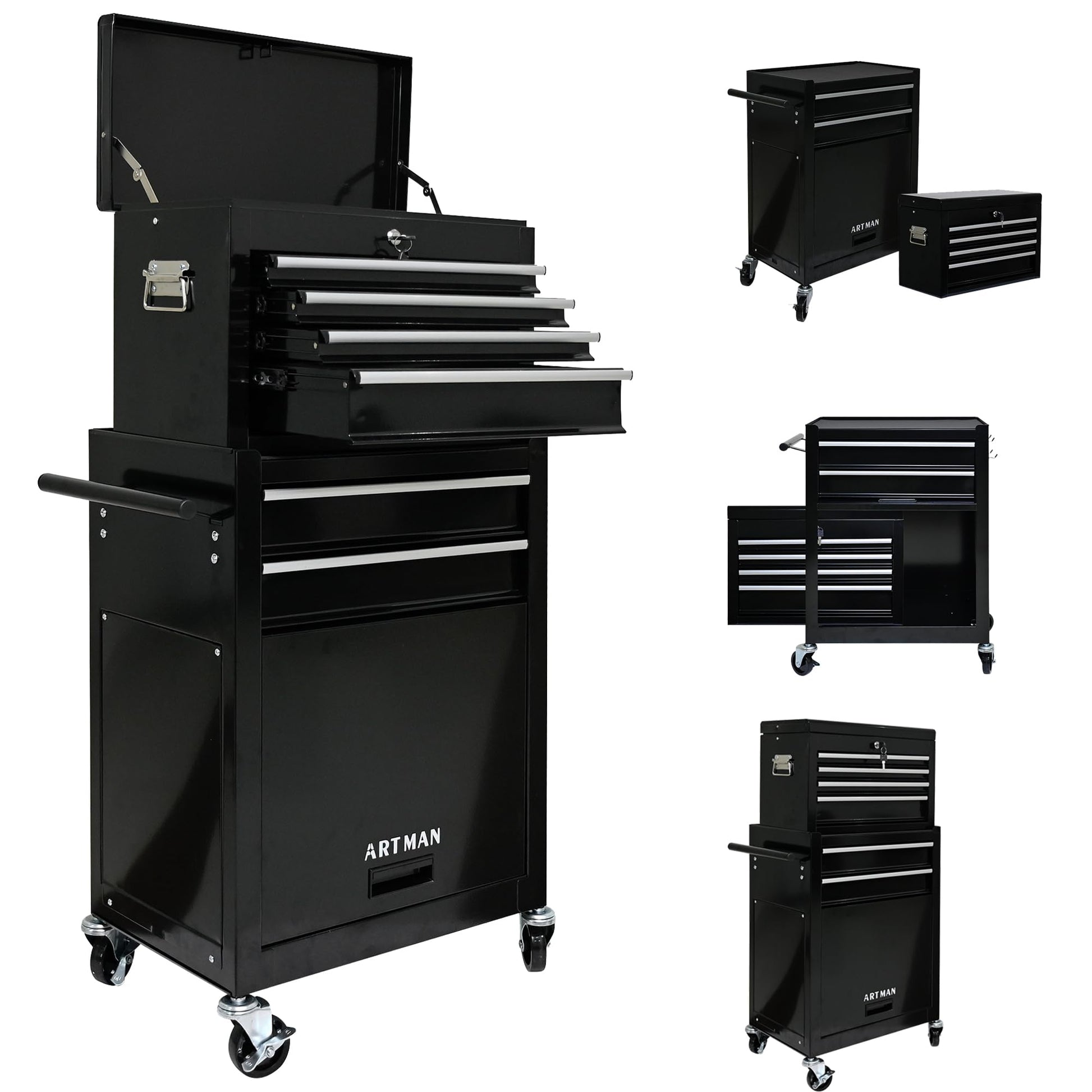 - 【Easy Moving & Storing】Top box with 2 handles, easy to take and lift, and bottom tool cabinet with hand bars, which help you to move forward. 2-IN-1 DESIGN. The tool chest with drawers is detachable, can be divided into top tool box and bottom tool cart, which can be used separately or together according to your needs. Besides, the top tool box can also be stored inside the bottom cabinet to save space.