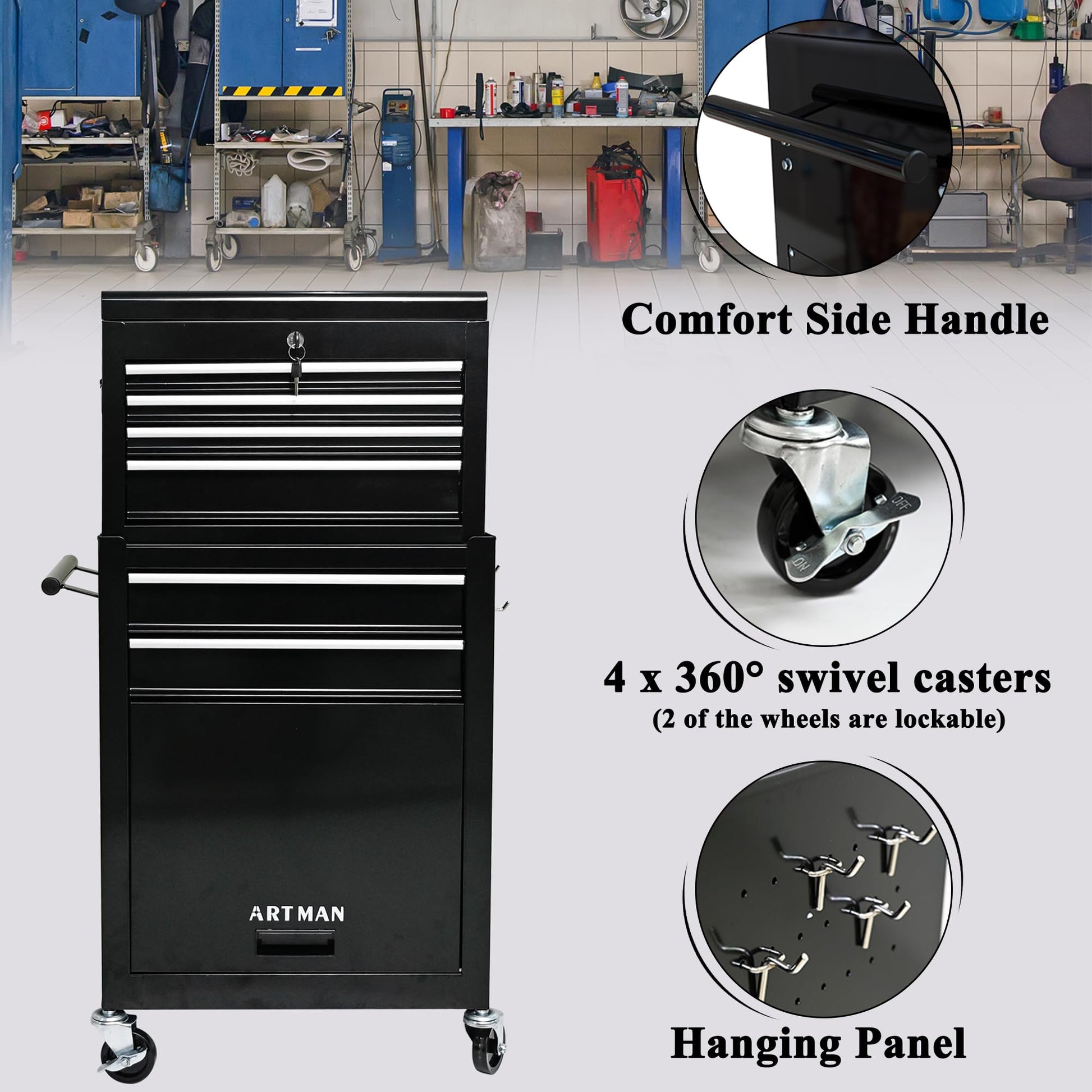 - NIGSQJB 6 Drawers Rolling Tool Chest, (42.9"H x 20.9"W x 13"D) Detachable Tool Box Organizers Tool Cart with Wheels, Lockable for Workshop, Warehouse, Mechanics Garage, Barbershop, Black