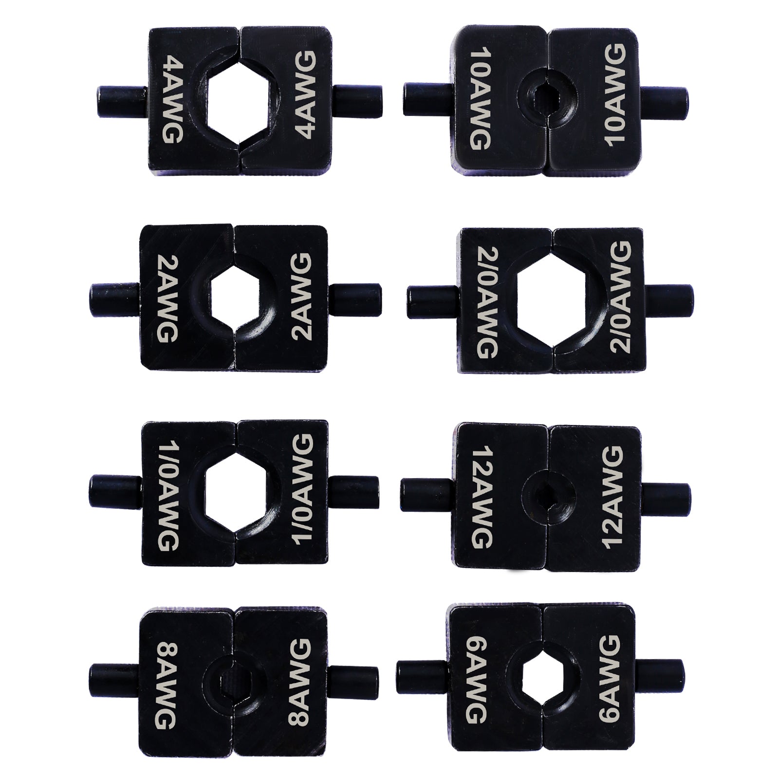 - 1. Standard ANSI Cable Die & 9 Pairs of Dies: The die is designed according to ANSI cable, not a metric die. Our crimping tool is built to last with HRC38 die hardness, ensuring durability and consistent performance. The mold can be effortlessly replaced thanks to the one-way fixed latch, making your work even more efficient.With nine pairs of dies included (12 AWG, 10 AWG, 8 AWG, 6 AWG, 4 AWG, 2 AWG, 1 AWG, 0 AWG, 00 AWG ), this kit has you covered for a variety of cable crimping tasks.