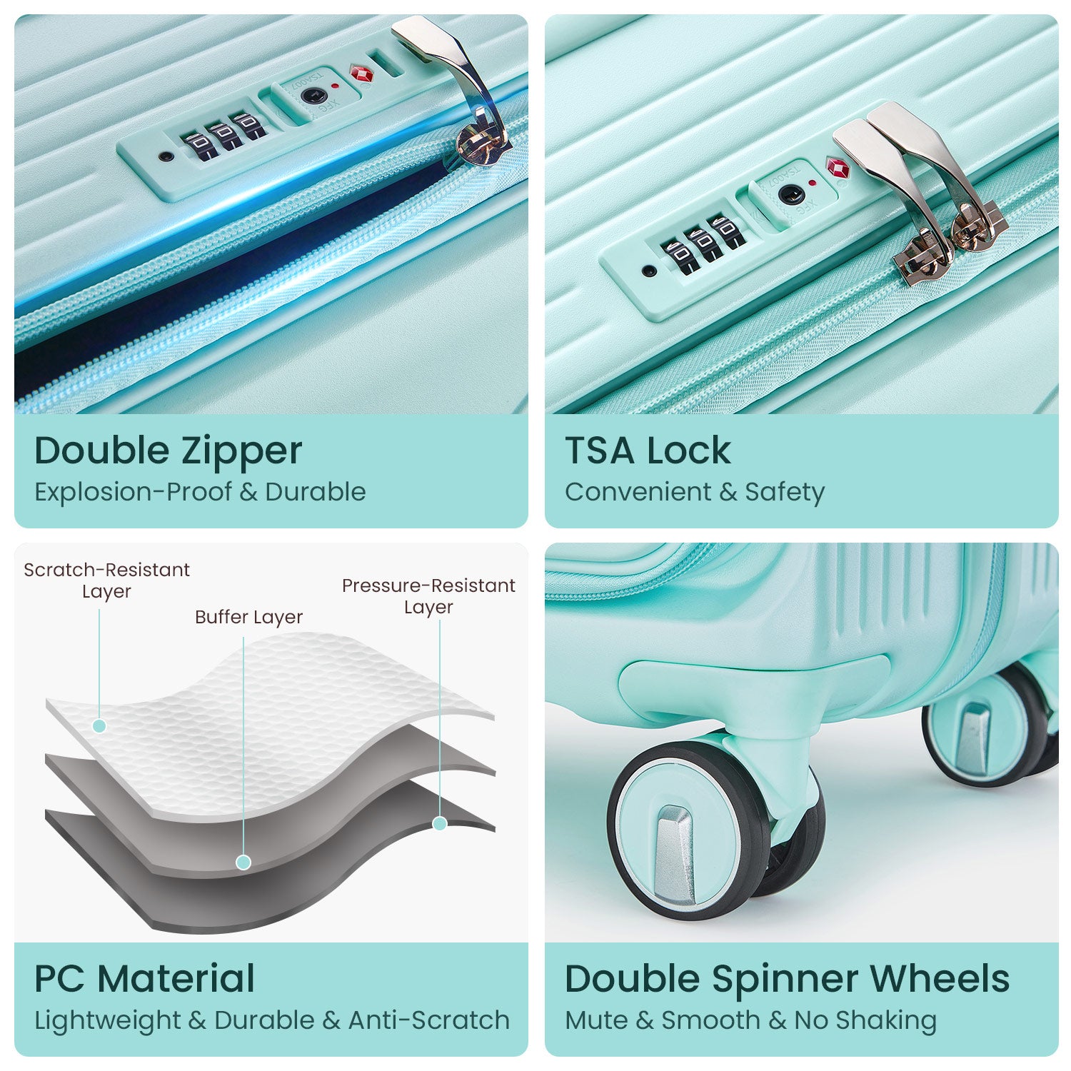 - STRUCTURAL INNOVATION: The PC luggage 3-piece set, all with front-opening lid design, saving strength & time & space. The 20-inch luggage, designed with a front-opening lid computer compartment, is perfect for office and travel purposes. Make your traveling efficient and comfortable. The 24/28in front-opening lid luggage with wet and dry storage compartments, more convenient and quick to store clothes