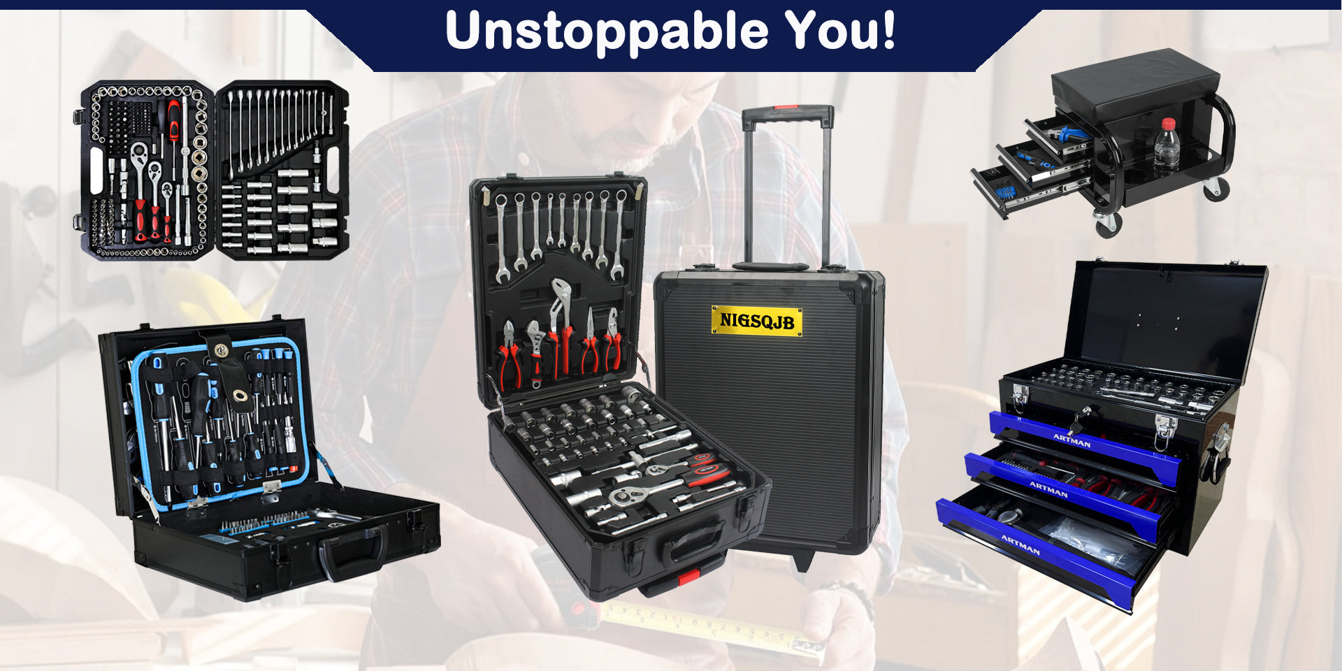 - NIGSQJB Tool Set 439pcs with 3 Drawers Tool Box Organizer, Mechanic Tool Set for Home, Tool Box Set 4-Tier Socket Wrench Ratchet Plier Nails, Home Tool Set Mechanics Kit for Adults Man Handyman.